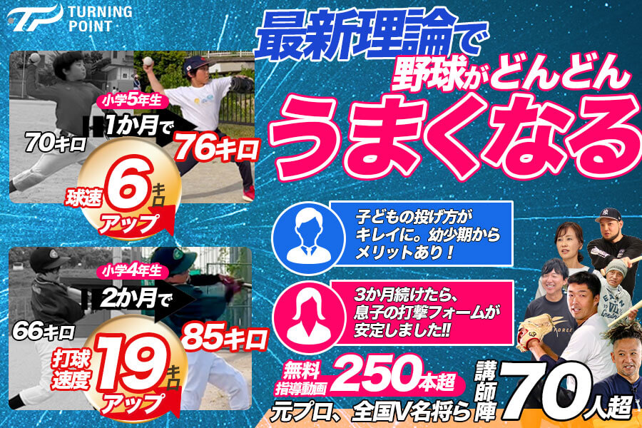 登録者向けに全国的に実績のある少年野球や中学野球の指導者のオンラインイベントも実施しています。コンテンツを通じて、指導に役立っている声も編集部に多く届き、最近では保護者だけでなく、高校野球の指導者が登録し、練習メニューに役立てているという話も聞いています。初歩や基礎から、応用まで子どもたちのきっかけを作る「TURNING POINT」を一度、体験してみてください。