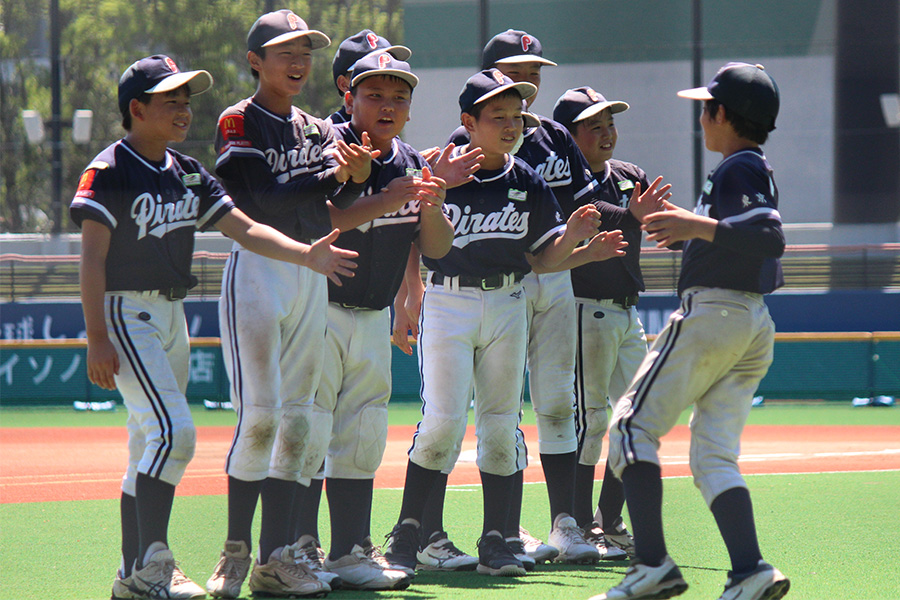 42歳の若き指揮官の下、子どもたちも伸び伸びとプレーしている。マクドナルド・トーナメントでは、試合前にスタメンがアナウンスされると、ベンチから勢いよく飛び出て、先に呼ばれた選手たちとハイタッチを交わす。昨年の6年生が同じ舞台で行っていた“儀式”を、1年ぶりに解禁し、1回戦の小名浜少年野球教室(福島)では、初回にいきなり5点を奪い波に乗った。