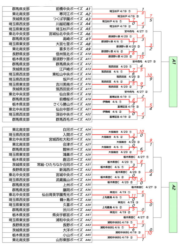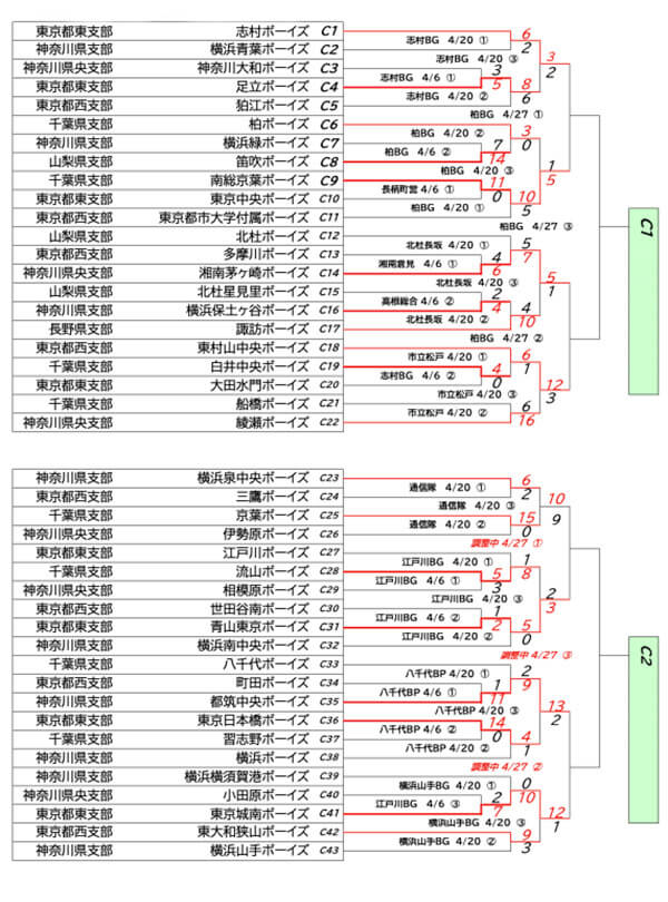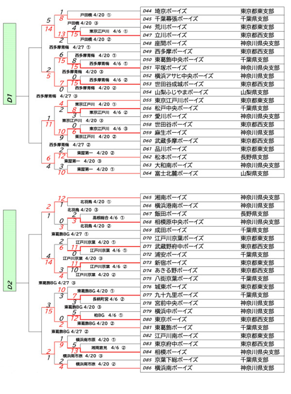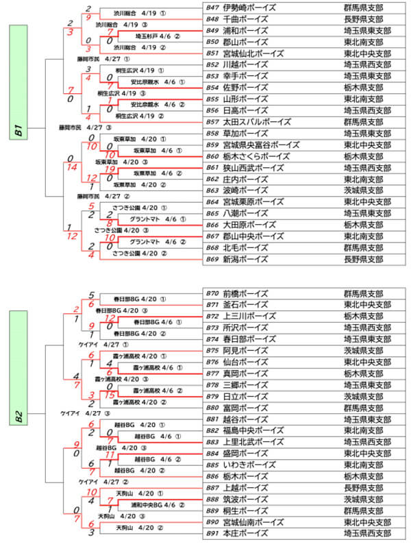 【勝ち上がり】メニコン杯 第28回関東ボーイズリーグ大会…中学部&小学部結果(20日まで)