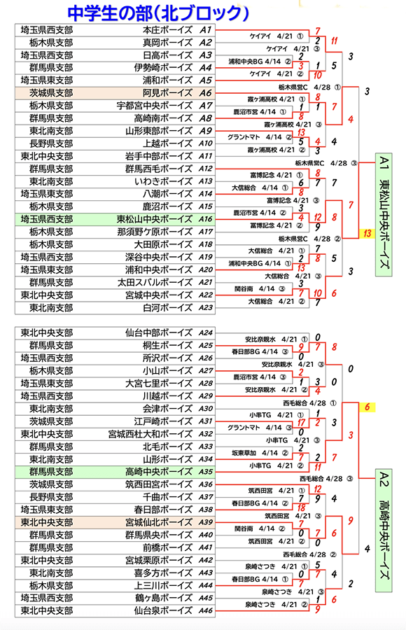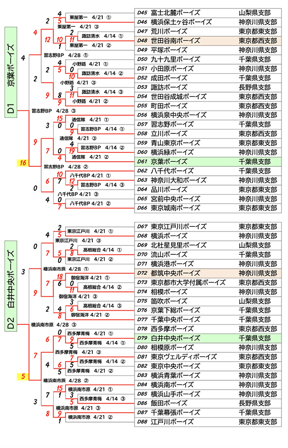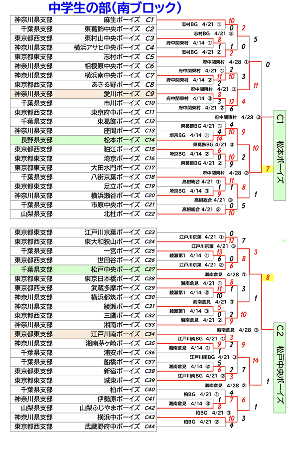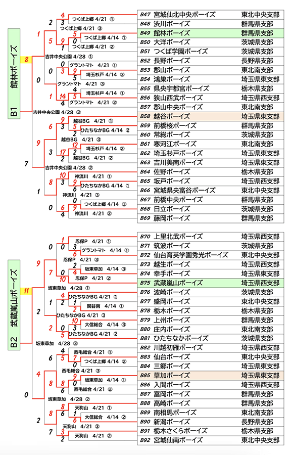 【勝ち上がり】メニコン杯 第27回関東ボーイズリーグ大会…中学部&小学部結果(4月28日まで)