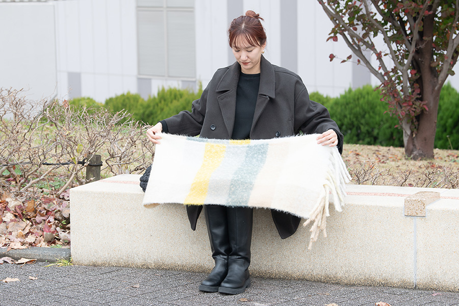 そして「1枚あるだけでいろいろ使えます」と、内田さんおすすめなのが大判で厚手のマフラーだ。