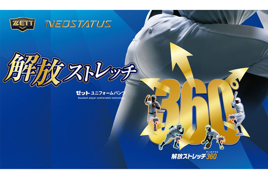 スポーツ用品メーカーのゼット株式会社は15日、スチューデント練習用ユニホームパンツ「解放ストレッチ360°(サンロクマル)」を発売したと発表した。「ネオステイタス ショートフィットパンツ」と「ネオステイタス レギュラーフィットパンツ」の2タイプを展開する。