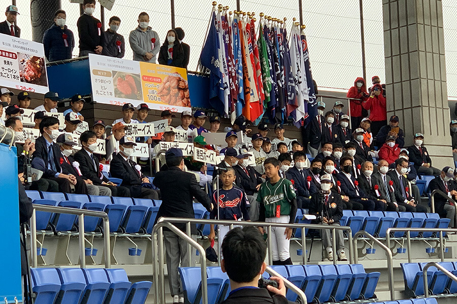 選手宣誓は、小学生の部が流山ボーイズ(千葉県)の山下和希主将、中学生の部は東広島ボーイズ・村本雷飛主将が大役を担う。決勝は小・中学ともに3月31日、大田スタジアムで開催される。