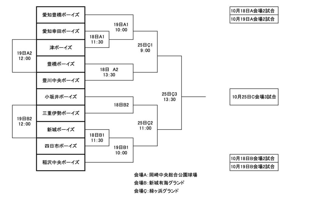 【組み合わせ】ボーイズリーグ新チームの“試金石” 「第20回日本少年野球中日本秋季大会」