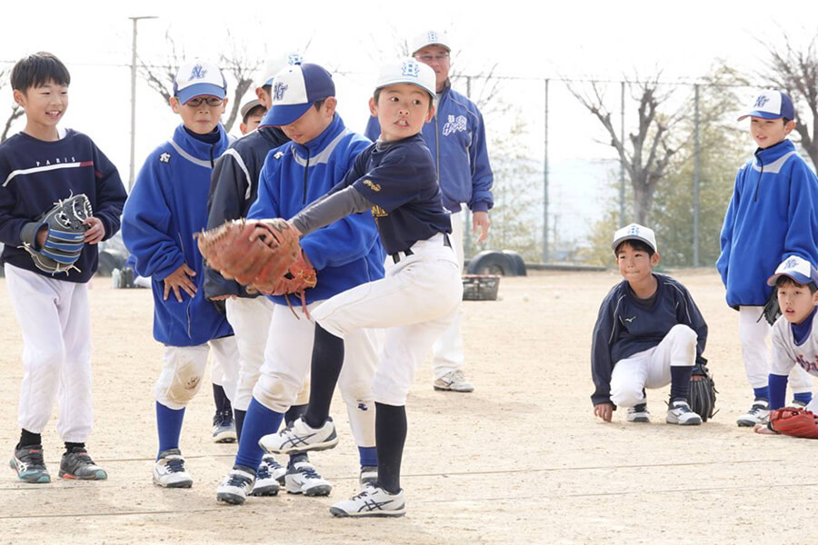 そこでチームでは、初心者にはまずネットや壁に向かって投げさせる。相手を気にする必要がないため、選手は伸び伸びと腕を振ることに集中できる。また、指導においても、大人の理想とするフォームを押し付けない。例えば、筋力が未熟な小学生に無理に理想的な肘の位置を強制すると、かえって投げにくくなることもある。その時点で選手が最も心地良く投げられるフォームを尊重することが、野球嫌いを防ぐ上で大切だという。