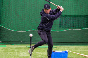 バットを振ってグラつく子、どう修正? 大阪桐蔭OB推奨…下半身に意識向く“沈み込み”