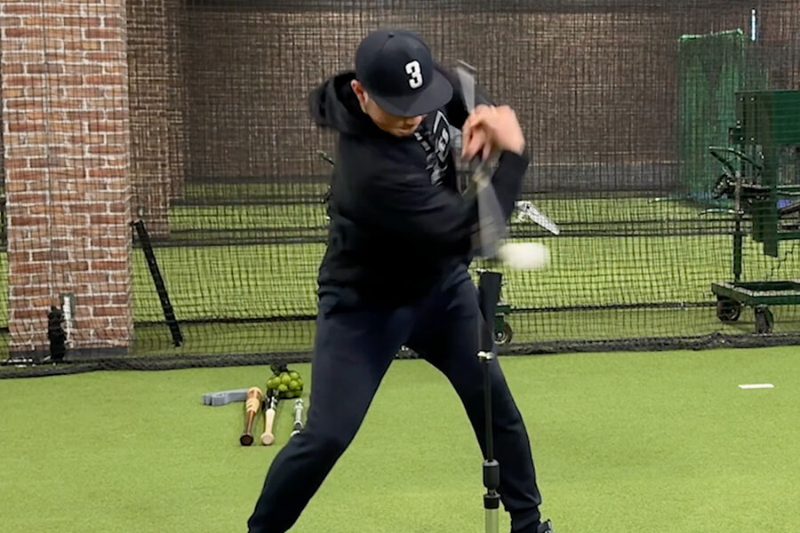 慣れてきたらバットを持ち、実際にスイングすることで上半身と下半身を連動させていく。高低の揺さぶりに悩んでいる打者は、ぜひ試してほしい。