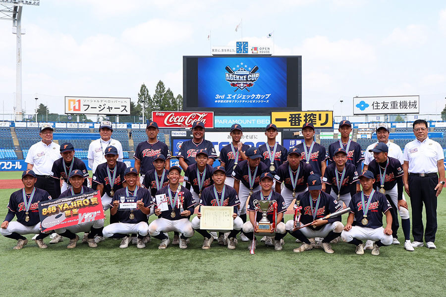 投打の戦略が見事にはまっての“日本一達成”だった。中学硬式野球5リーグの全国王者が激突する「3rdエイジェックカップ 中学硬式野球グランドチャンピオンシリーズ」が8月27〜29日に開催され、ボーイズリーグ代表の東海中央ボーイズ(愛知)は、神宮球場で行われた29日の決勝戦で、ヤングリーグ代表のオール岡山ヤング(岡山)を1-0で撃破。初出場で初優勝を飾った。チーム創設13年目でつかんだビッグタイトル。竹脇賢二監督が全国大会を勝ち抜くための取り組みを明かした。