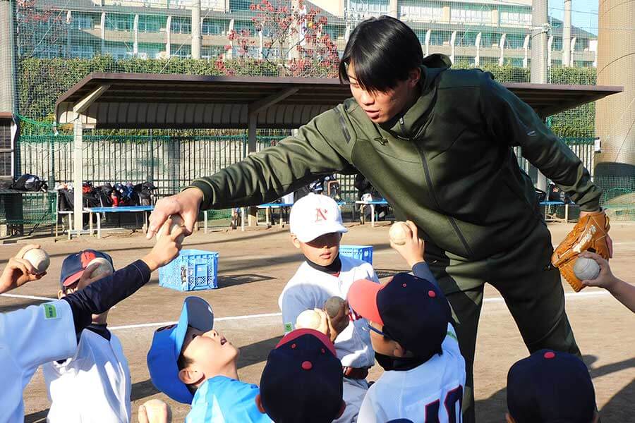 ロッテ・金田優太が野球教室でゴロ捕球を実演 動きのスピードを上げるよりも、無駄のない動きを身に付ける方が結果的にアウトを取る確率は高く...